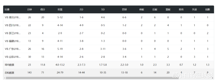 本届全运会,李沅珊场均23分钟,拿到11.8分3.3篮板0.7助攻1.3抢断0.7盖帽,跨级打U18能有这个数据真的挺不错。