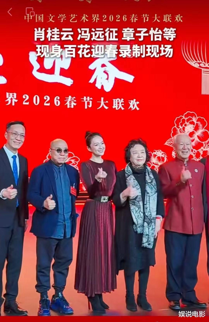看来曾黎也参加百花迎春晚会的录制,这次邀请很多电影演员参加录制,章子怡和冯远征、尹力、肖桂云、谢铁骊等亮相舞台,章子怡一身红裙,看起来还是很年轻。