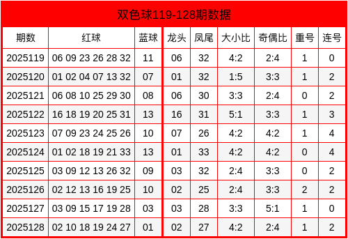 双色球2025128期开出奖号:红球02、10、18、19、24、27,蓝球01。